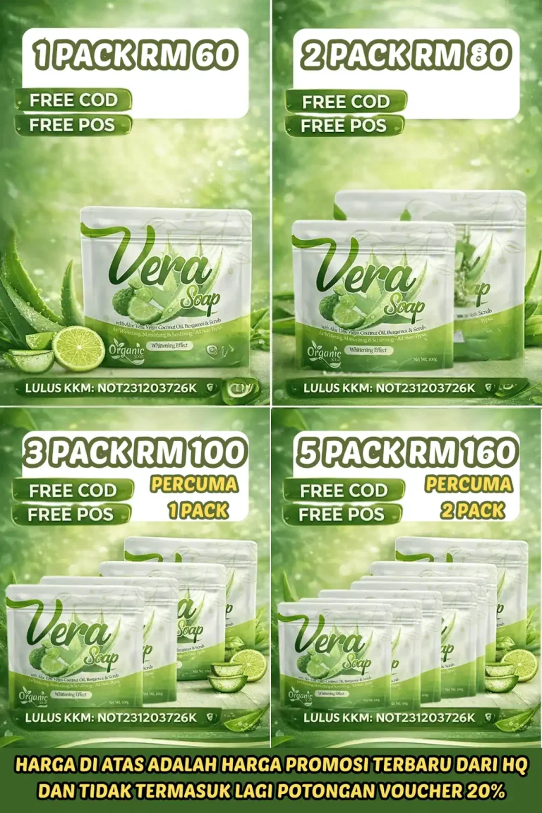 Jika digunakan 3 kali sehari. 1 sabun vera bertahan selama 2 minggu